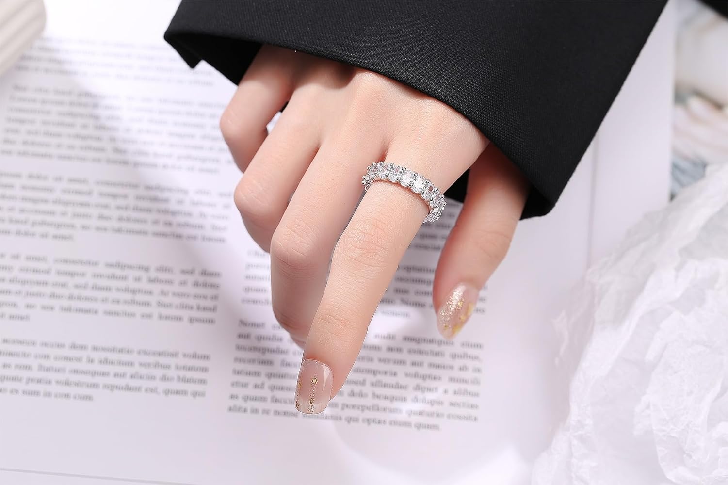 The ring is embellished with American Diamonds (Cubic Zirconia), carefully cut and polished to mimic the brilliance of natural diamonds.